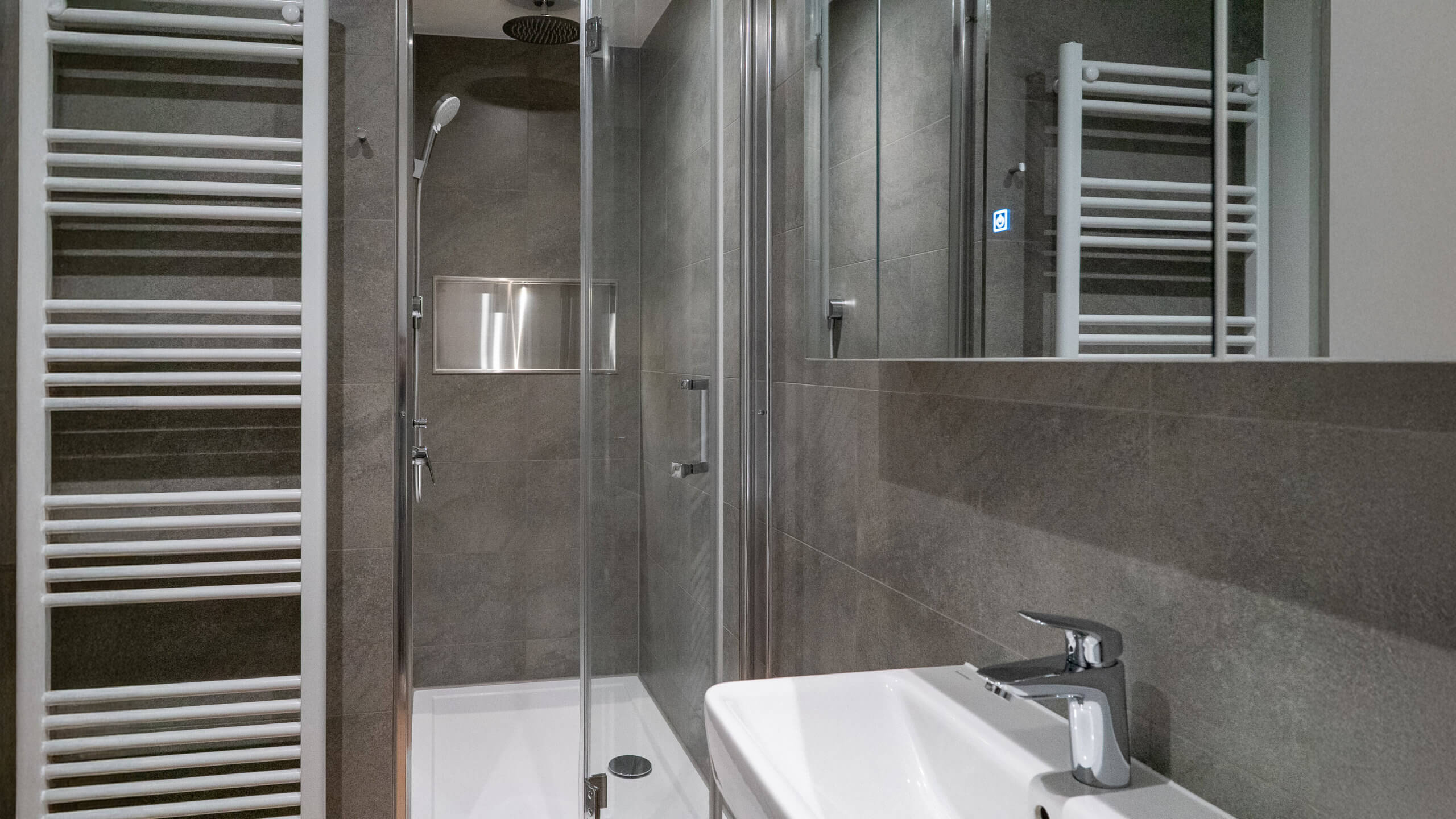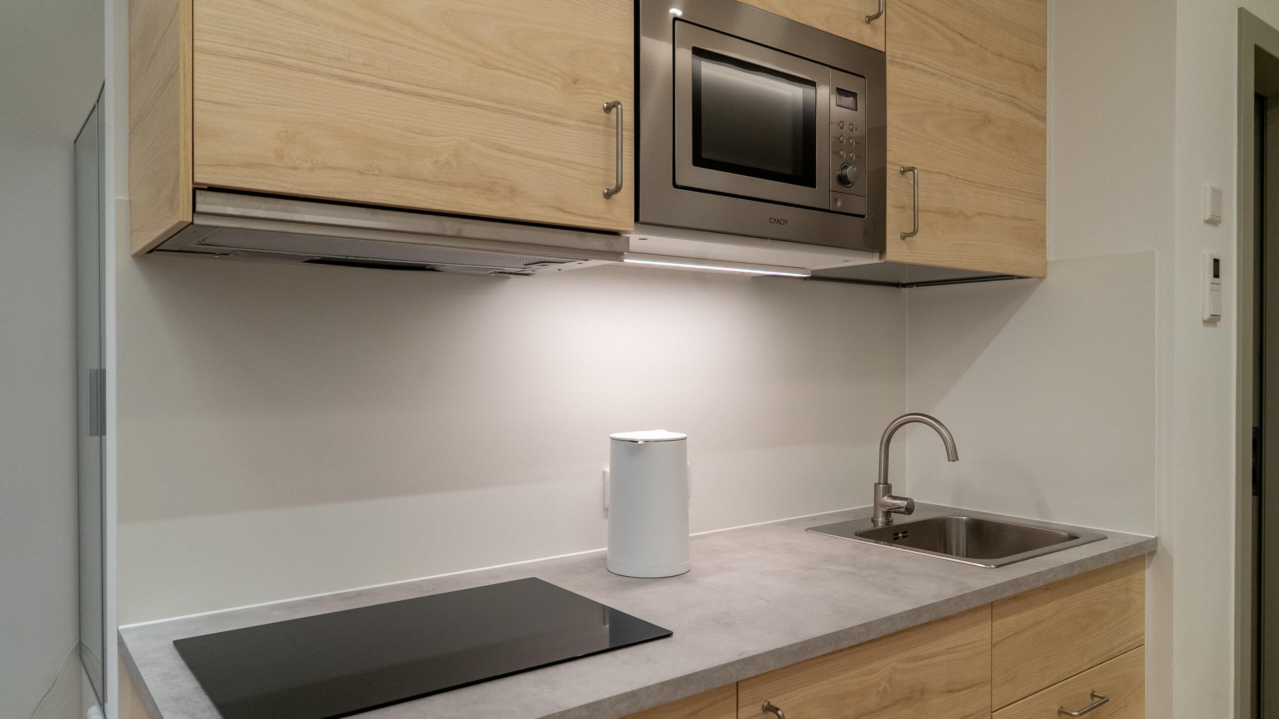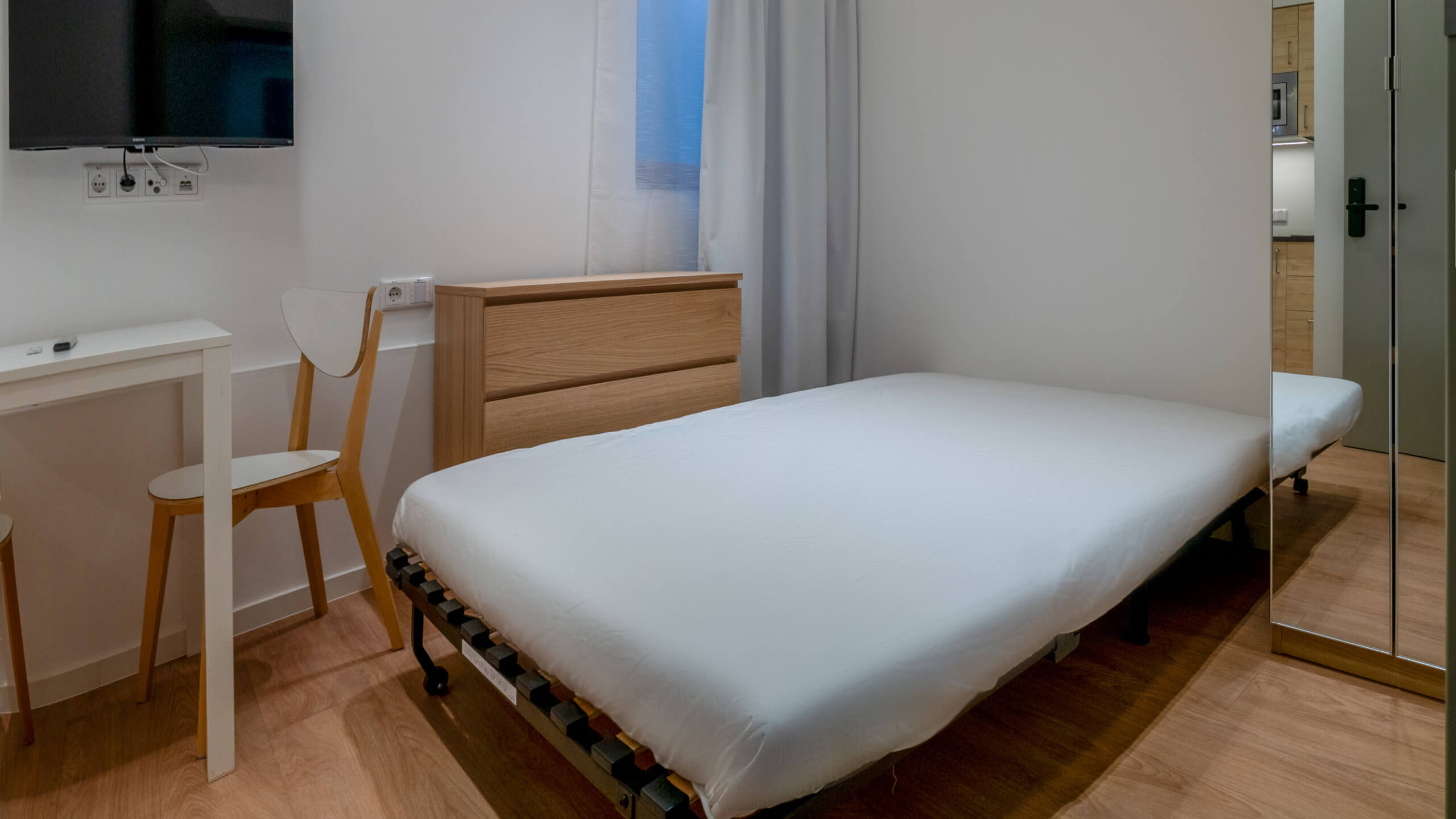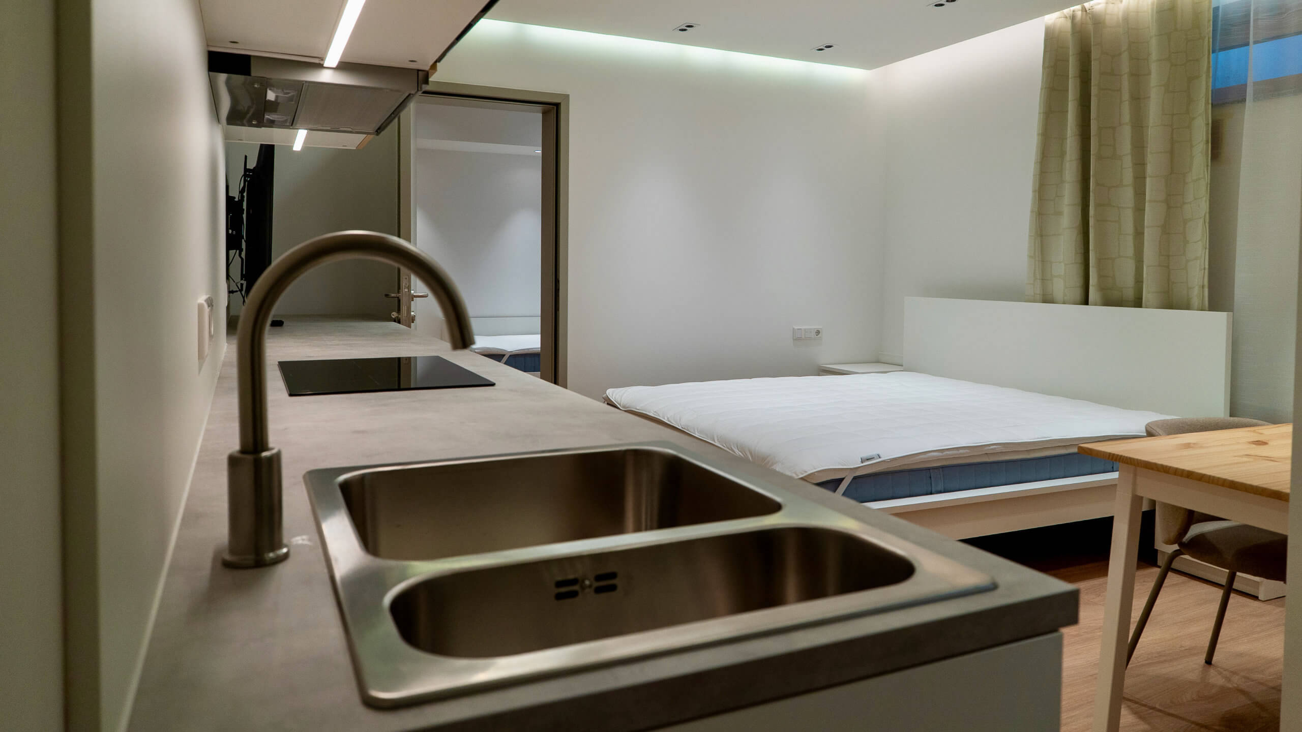 Kompakt, besonders effizient geplant und dennoch vollständig ausgestattet. Die wirtschaftlichste Option im Mini-Hotel – ohne Verzicht auf Funktionalität.