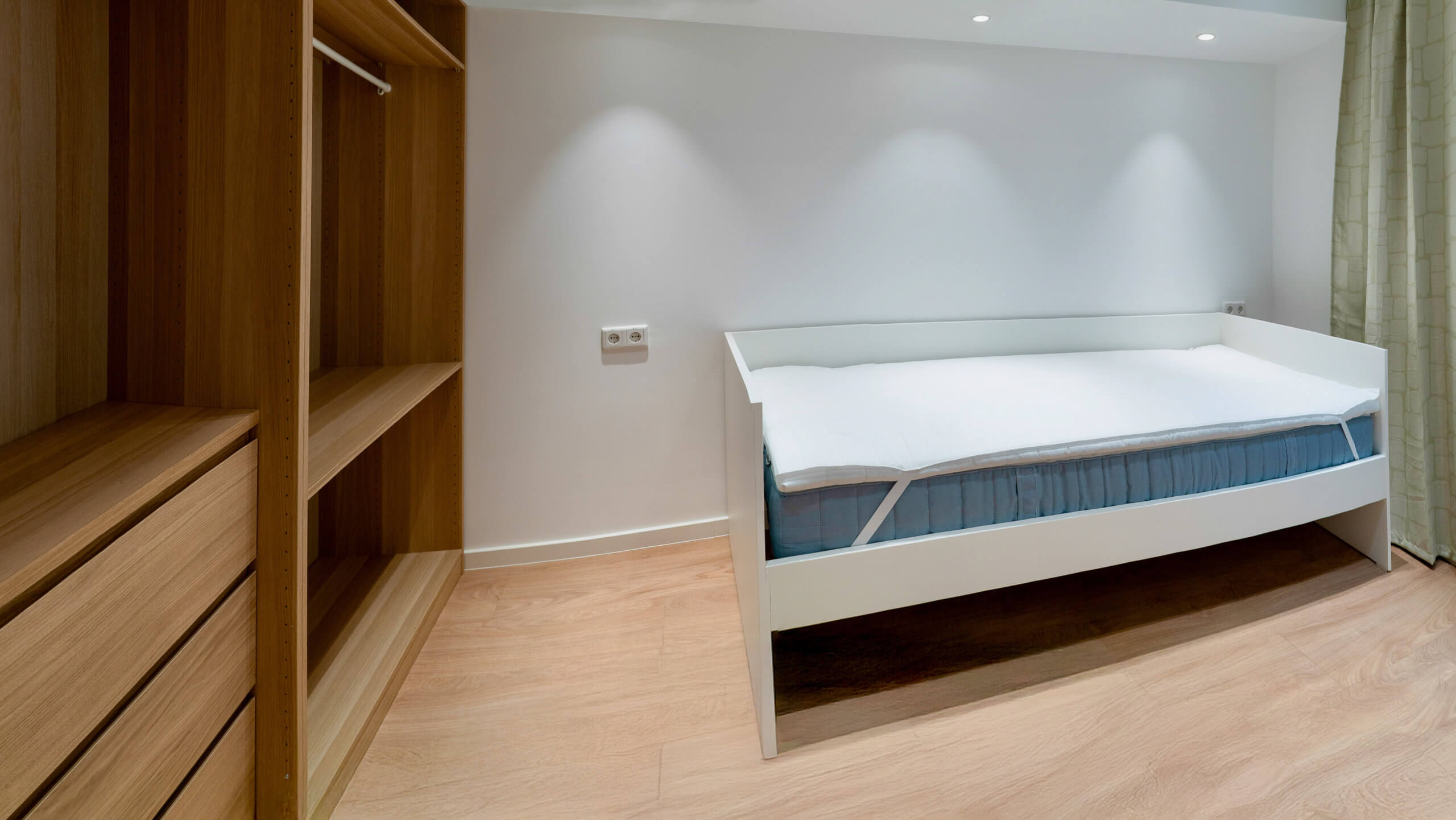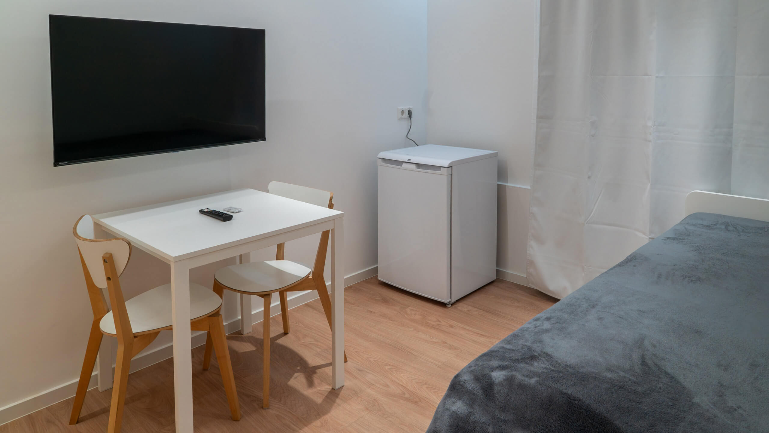 Großzügig geschnittenes 2-Zimmer-Apartment mit separatem Schlafzimmer und großem Doppelbett. Platz für bis zu 3 Personen – ideal für längere Aufenthalte oder Gäste mit erhöhtem Platzbedarf.