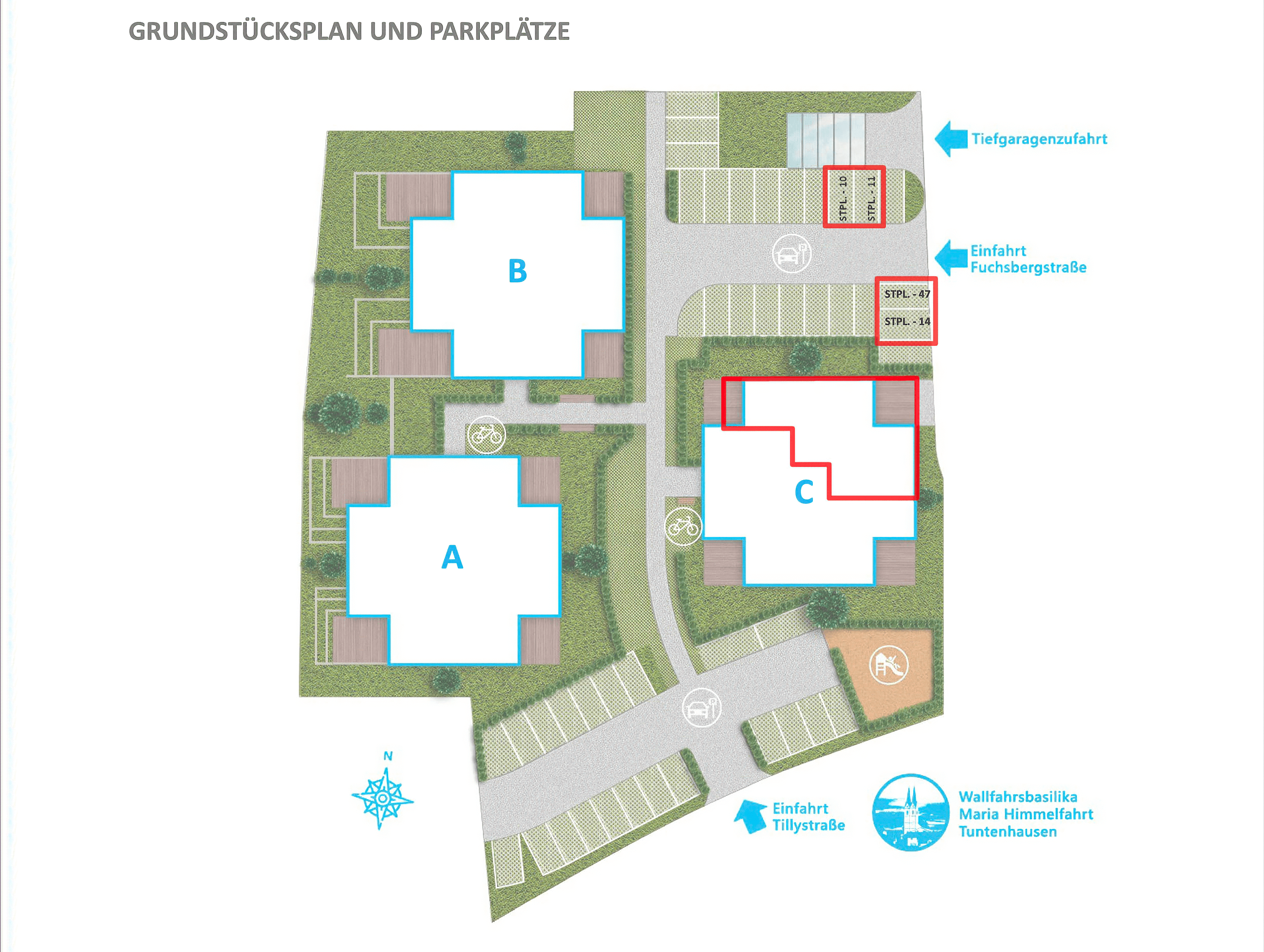 Die Wohnanlage befindet sich in Tuntenhausen (Landkreis Rosenheim), nur wenige Schritte von der Wallfahrtsbasilika Mariä Himmelfahrt entfernt. Der Standort verbindet ländliche Ruhe mit sehr guter Anbindung an München und die Region.