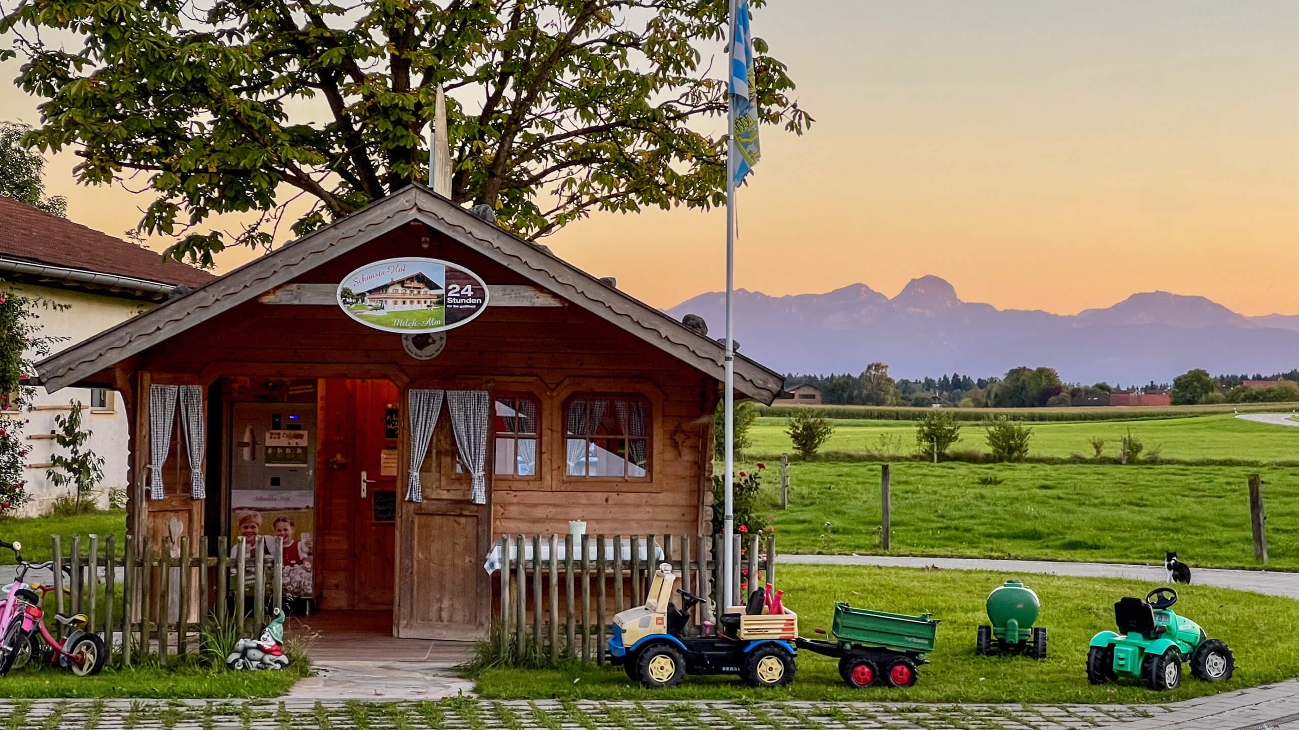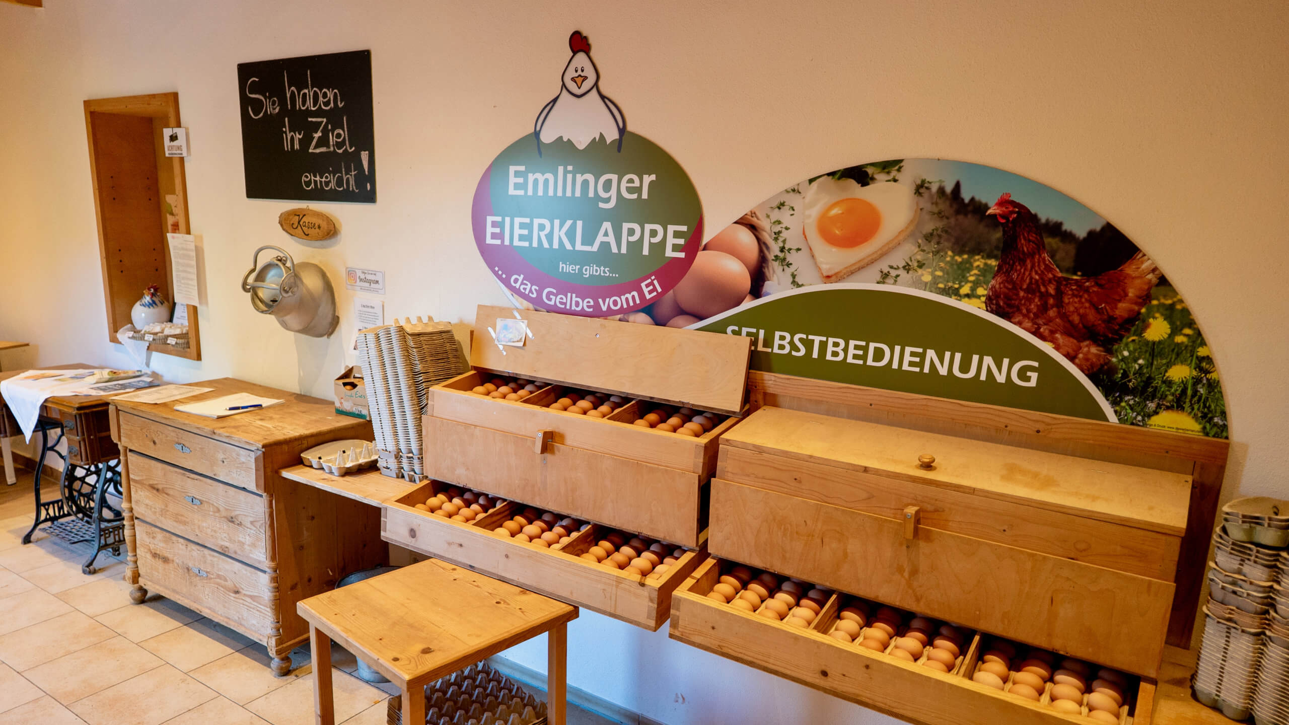 - zwei 24/7-Selbstbedienungs-Hofläden in ca. 5 Minuten per Fahrrad